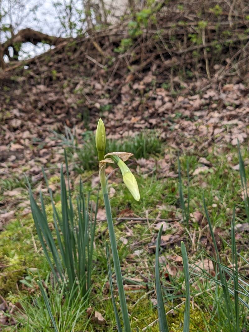 Jim ging bijvoorbeeld met Giel en Mart de takken in en rondom de poel opruimen. Daarbij moesten wel goed opletten, want er groeien al veel bollen op. Die willen we natuurlijk niet vertrappen. Zo hebben we o.a. daslook en narcissen.